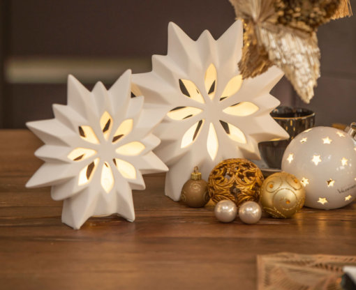 Lampe, Licht, Weihnachtsdeko, Schnee, Schneeflocke, Regal, Sideboard, Valentino, Valentino Keramik, Wohnideen, Wohnen, Trend, Winter, Winterdeko, Tischdeko, Winterhochzeit, Dezember, Januar, Februar